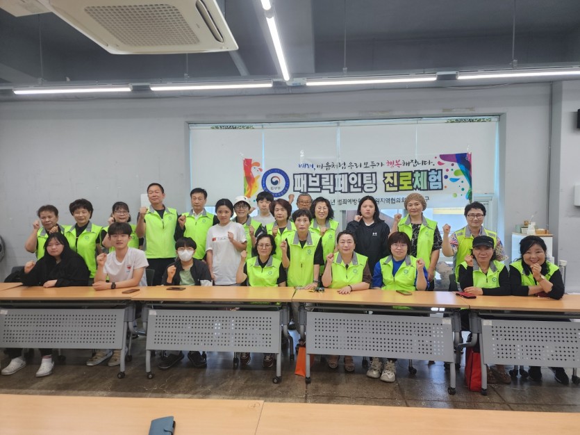 내용 : 진해지구에서 결연 중인 청소년들과 청소년 범죄예방위원이 함께 페브릭 페인팅 진로 체험을 실시하여 청소년들에게 다양한 경험과 건전한 여가 활동 기회를 제공하고, 이웃의 관심과 사랑을 깨달아 미래에 대한 용기와 희망을 갖고 올바른 사회인으로 성장할 수 있도록 도움을 주고자 함.