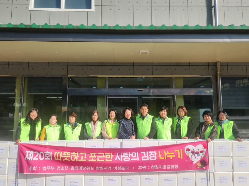 내용 : 연말연시에 소외되기 쉬운 어려운 환경의 모범 청소년과 소년․소녀가장 및 선도조건부 기소유예 대상자 및 다문화 가정 결연 청소년들에게 540kg의 김장을 전달함으로써 사회의 따뜻한 온정과 사랑을 느껴 용기와 희망을 갖고 지낼 수 있도록 격려함.