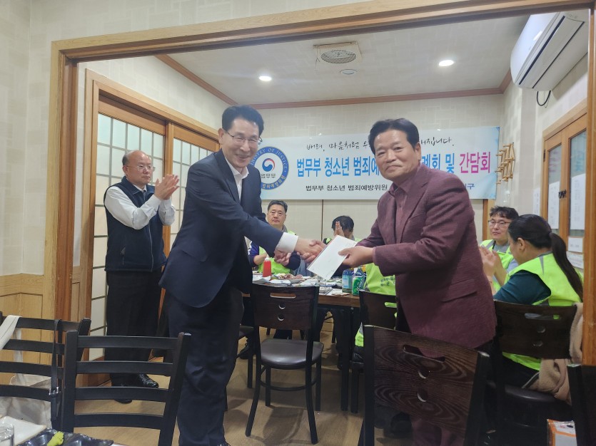 내용 : 형사1부장검사님이 성산지구를 방문하여 위원들의 꾸준한 범죄예방 활동을 치하하고, 격려금(50만원)을 전달함으로써보다 적극적이고 체계적인 범죄예방 활동을 펼칠 수 있도록 격려함.