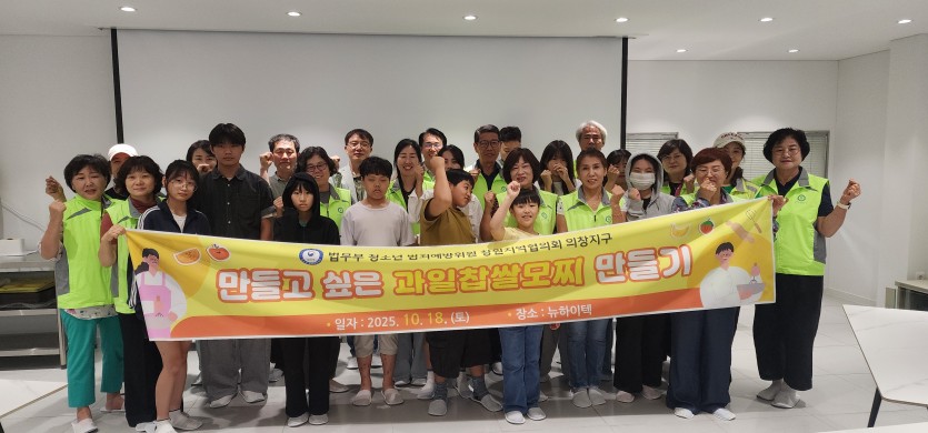 내용 : 의창지구에서 결연 중인 청소년과 위원이 함께하는 과일 찹쌀 모찌 만들기 체험을 통해 상호 공감대 형성 및 청소년들이 스스로 자신의 장래에 대한 생각을 할 수 있도록 해 재범 방지 및 건전한 사회인으로 성장할 수 있도록 돕고자 함.