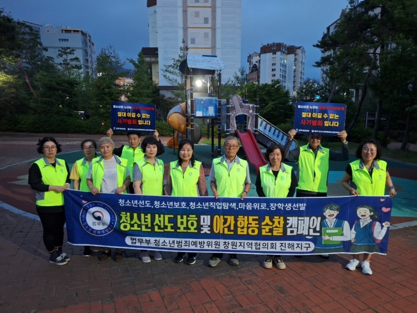 내용 : 장복초, 덕산초, 도천초, 동진중, 중앙고 등 학교 및 통학로 주변, 경화역, 진해공설운동장 등 공원 주변, 어두운 주택가 골목, 유흥업소 밀집지역에서 청소년 선도 및 법질서 바로세우기 순찰 활동 전개.